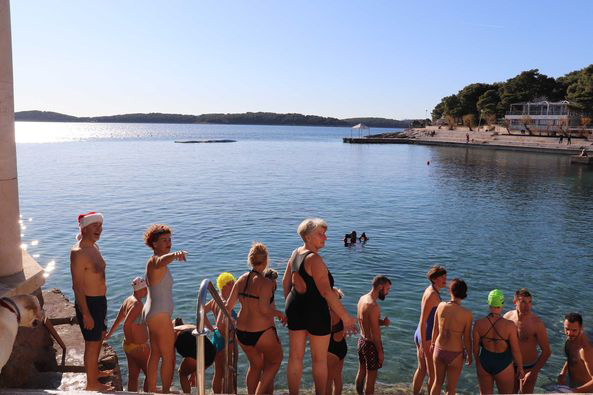 U more uskču spremni i nespremni, stari i mladi, mamurni od prijašnje noći, s kapicama ili bez, al jedno je sigurno, hrabro! Ova adrenalinska inekcija uz bićerin, muziku i uvijek veselu grupicu kupača, odličan je ulazak u novu godinu. Moramo napomenuti da se skače bez obzira na vremenske uvijete te da se, kako Polarni tovari kažu, ko jednom proba uvijek vrati.